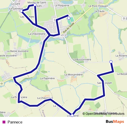 The first stop of the Pannece bus route is La Rivière and the last stop is Ec Public Pannece - Pannece Provisoire Travaux. Pannece is operational during todos los días.