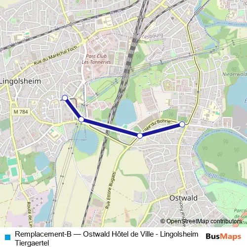 Click here to view the nearest Remplacement-B - Ostwald Hôtel de Ville - Lingolsheim Tiergaertel bus stop.