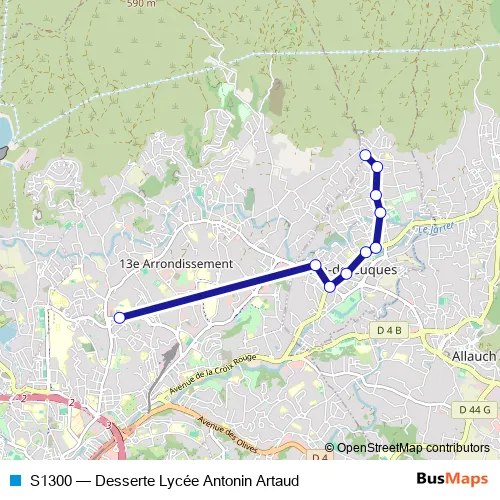 Click here to view the nearest S1300 - Desserte Lycée Antonin Artaud bus stop.