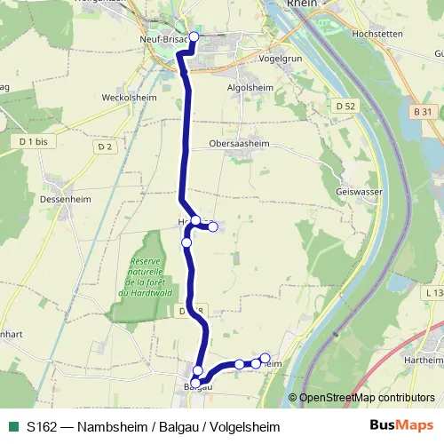 Click here to view the nearest S162 - Nambsheim / Balgau / Volgelsheim bus stop.