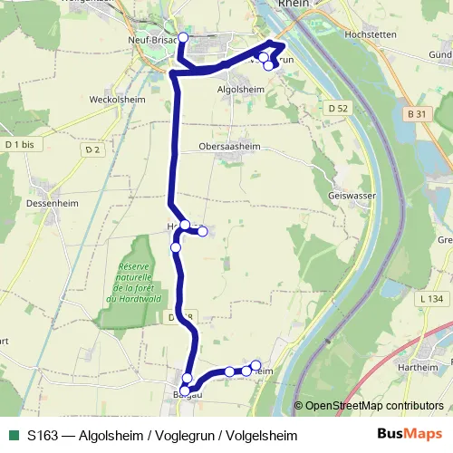 Bus S163 - Algolsheim / Voglegrun / Volgelsheim: Full Schedule in Balgau