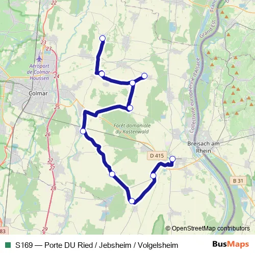 Bus S169 - Porte DU Ried / Jebsheim / Volgelsheim in Colmar: Stops & Timetable