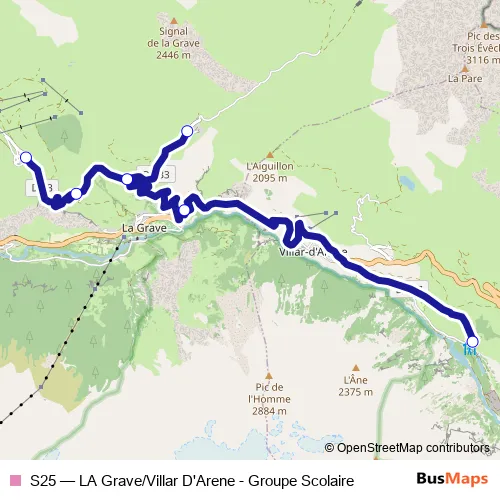 Click here to view the nearest S25 - LA Grave/Villar D'Arene - Groupe Scolaire bus stop.