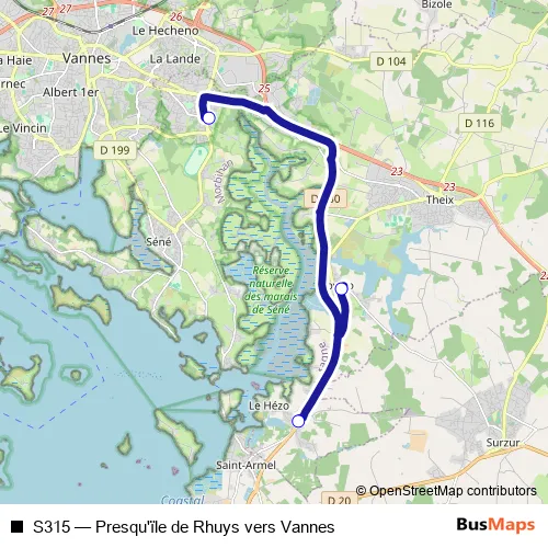 Click here to view the nearest S315 - Presqu'ïle de Rhuys vers Vannes bus stop.