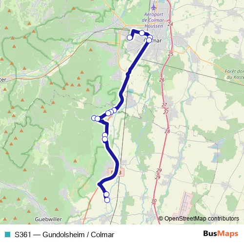 Click here to view the nearest S361 - Gundolsheim / Colmar bus stop.