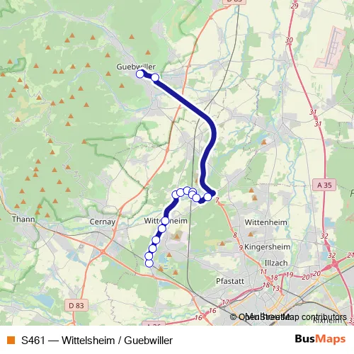 Click here to view the nearest S461 - Wittelsheim / Guebwiller bus stop.