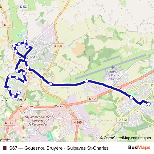 Click here to view the nearest S67 - Gouesnou Bruyère - Guipavas St-Charles bus stop.