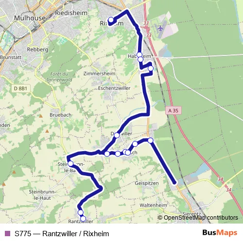 Click here to view the nearest S775 - Rantzwiller / Rixheim bus stop.