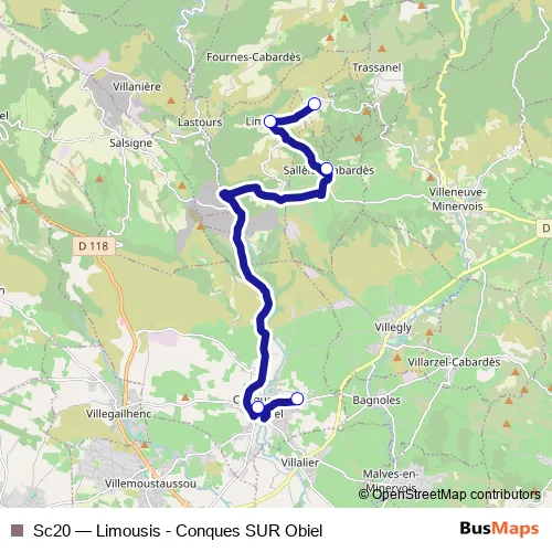 Bus Sc20 - Limousis - Conques SUR Obiel Schedule in Carcassonne