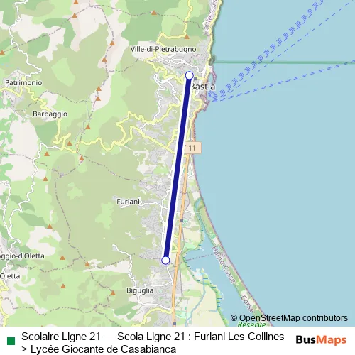 See why over 2 million users trust and consider busmaps.com as the best public transport website. busmaps gives you Bastia Buses suggested routes, real-time bus tracker, line route maps in Bastia, and helps to find the closest Scolaire Ligne 21 bus stops near you. No internet available? Download an offline PDF map and bus schedule for the Scolaire Ligne 21 bus to take on your trip.