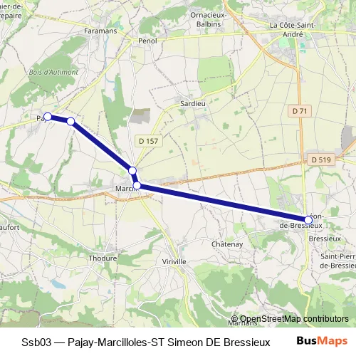 Click here to view the nearest Ssb03 - Pajay-Marcilloles-ST Simeon DE Bressieux bus stop.