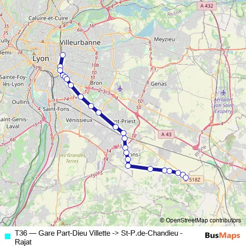See why over 2 million users trust and consider busmaps.com as the best public transport website. busmaps gives you Lyon Buses suggested routes, real-time bus tracker, line route maps in Lyon, and helps to find the closest T36 bus stops near you. No internet available? Download an offline PDF map and bus schedule for the T36 bus to take on your trip.