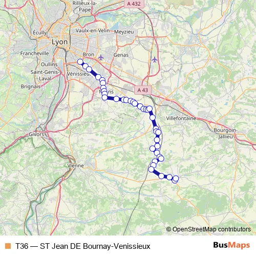 Click here to view the nearest T36 - ST Jean DE Bournay-Venissieux bus stop.