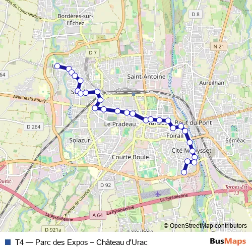 Bus T4 - Parc des Expos – Château d'Urac: Full Schedule in Tarbes