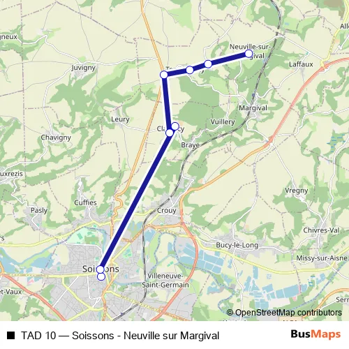 Click here to view the nearest TAD 10 - Soissons - Neuville sur Margival bus stop.