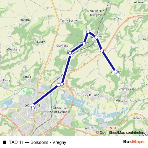 Click here to view the nearest TAD 11 - Soissons - Vregny bus stop.