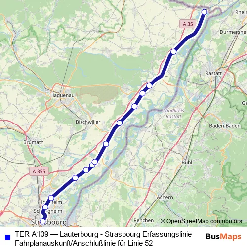 Bus TER A109 - Lauterbourg - Strasbourg Erfassungslinie Fahrplanauskunft/Anschlußlinie für Linie 52: Full Schedule in Strasbourg
