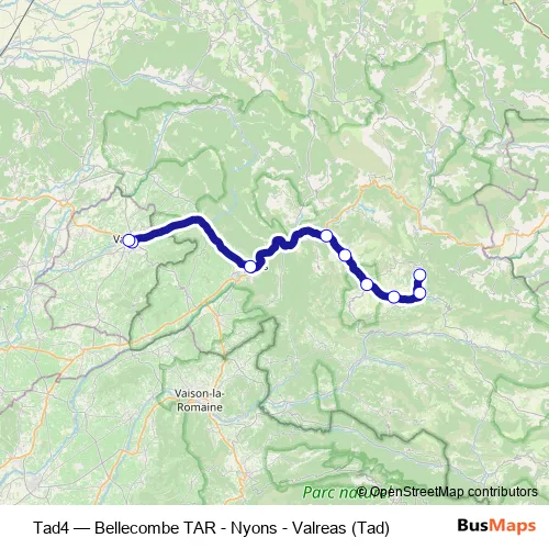 See why over 2 million users trust and consider busmaps.com as the best public transport website. busmaps gives you Nyons Buses suggested routes, real-time bus tracker, line route maps in Nyons, and helps to find the closest Tad4 bus stops near you. No internet available? Download an offline PDF map and bus schedule for the Tad4 bus to take on your trip.