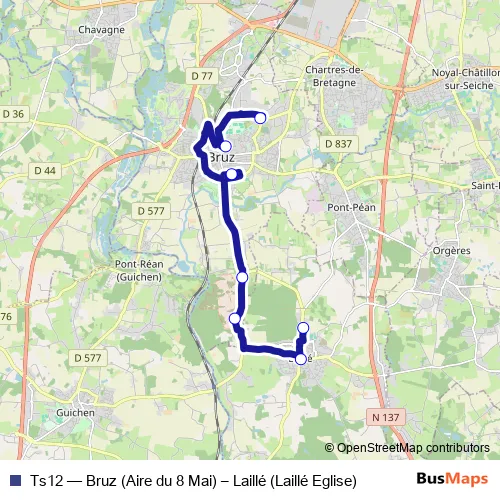 Click here to view the nearest Ts12 - Bruz (Aire du 8 Mai) – Laillé (Laillé Eglise) bus stop.