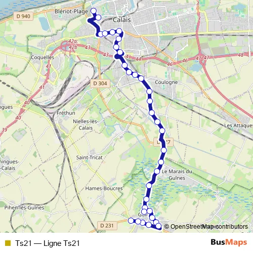 See why over 2 million users trust and consider busmaps.com as the best public transport website. busmaps gives you Calais Buses suggested routes, real-time bus tracker, line route maps in Calais, and helps to find the closest Ts21 bus stops near you. No internet available? Download an offline PDF map and bus schedule for the Ts21 bus to take on your trip.