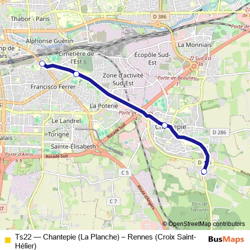 See why over 2 million users trust and consider busmaps.com as the best public transport website. busmaps gives you Rennes Buses suggested routes, real-time bus tracker, line route maps in Rennes, and helps to find the closest Ts22 bus stops near you. No internet available? Download an offline PDF map and bus schedule for the Ts22 bus to take on your trip.