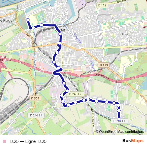See why over 2 million users trust and consider busmaps.com as the best public transport website. busmaps gives you Calais Buses suggested routes, real-time bus tracker, line route maps in Calais, and helps to find the closest Ts25 bus stops near you. No internet available? Download an offline PDF map and bus schedule for the Ts25 bus to take on your trip.