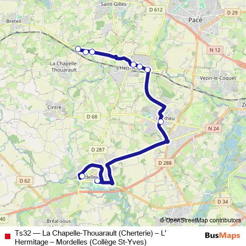Click here to view the nearest Ts32 - La Chapelle-Thouarault (Cherterie) – L'Hermitage – Mordelles (Collège St-Yves) bus stop.