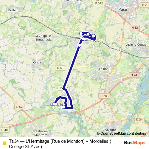 Click here to view the nearest Ts34 - L'Hermitage (Rue de Montfort) – Mordelles (Collège St-Yves) bus stop.