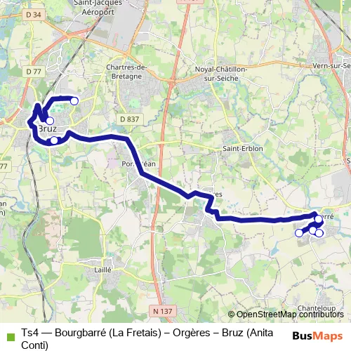 Bus Ts4 - Bourgbarré (La Fretais) – Orgères – Bruz (Anita Conti): Full Schedule in Bourgbarre
