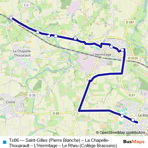Click here to view the nearest Ts66 - Saint-Gilles (Pierre Blanche) – La Chapelle-Thouarault – L'Hermitage – Le Rheu (Collège Brassens) bus stop.