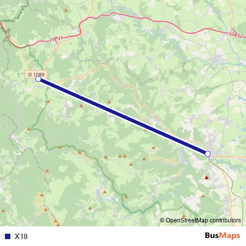 The first stop of the X18 bus route is Noirétable Place Passelière and the last stop is Boën. X18 is operational during entre semana.