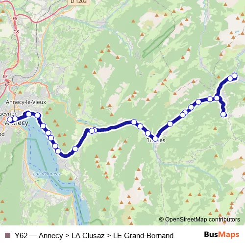 See why over 2 million users trust and consider busmaps.com as the best public transport website. busmaps gives you Annecy Buses suggested routes, real-time bus tracker, line route maps in Annecy, and helps to find the closest Y62 bus stops near you. No internet available? Download an offline PDF map and bus schedule for the Y62 bus to take on your trip.