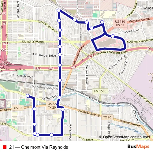 21 (Chelmont Via Raynolds) Bus in El Paso