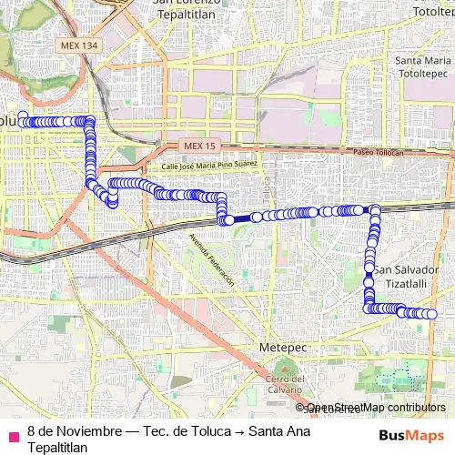 Bus 8 de Noviembre - Tec. de Toluca → Santa Ana Tepaltitlan in Toluca: Stops & Timetable