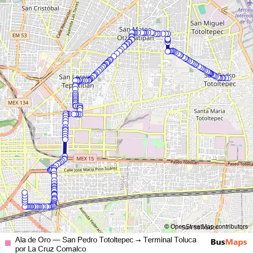 See why over 2 million users trust and consider busmaps.com as the best public transport website. busmaps gives you Toluca Buses suggested routes, real-time bus tracker, line route maps in Toluca, and helps to find the closest Ala de Oro bus stops near you. No internet available? Download an offline PDF map and bus schedule for the Ala de Oro bus to take on your trip.