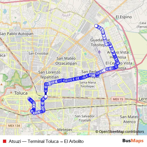 See why over 2 million users trust and consider busmaps.com as the best public transport website. busmaps gives you Toluca Buses suggested routes, real-time bus tracker, line route maps in Toluca, and helps to find the closest Atsuzi bus stops near you. No internet available? Download an offline PDF map and bus schedule for the Atsuzi bus to take on your trip.