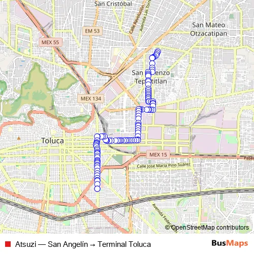 Click here to view the nearest Atsuzi - San Angelín → Terminal Toluca bus stop.