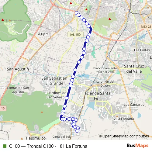 Bus C100 - Troncal C100 - 181 La Fortuna: Full Schedule in Tlajomulco de Zuniga