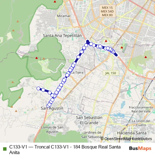 Bus C133-V1 - Troncal C133-V1 - 184 Bosque Real Santa Anita: Full Schedule in Guadalajara