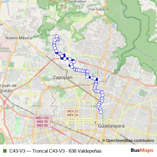 Bus C43-V3 - Troncal C43-V3 - 636 Valdepeñas in Zapopan: Stops & Timetable