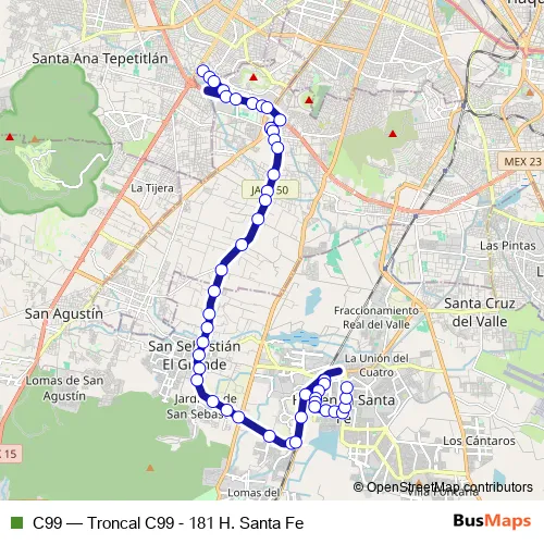 Bus C99 - Troncal C99 - 181 H. Santa Fe in Guadalajara: Stops & Timetable