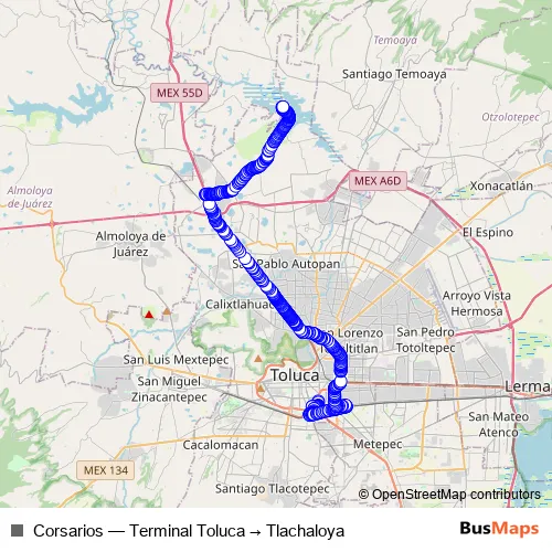 Bus Corsarios - Terminal Toluca → Tlachaloya in Toluca: Stops & Timetable