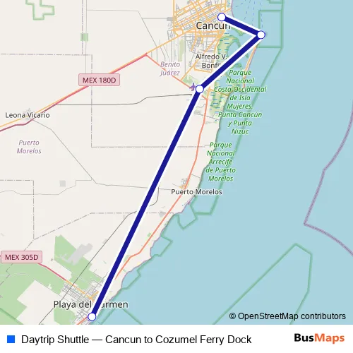 Click here to view the nearest Daytrip Shuttle - Cancun to Cozumel Ferry Dock bus stop.