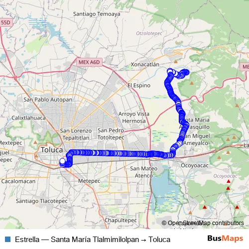 Click here to view the nearest Estrella - Santa María Tlalmimilolpan → Toluca bus stop.