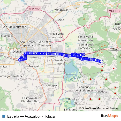 See why over 2 million users trust and consider busmaps.com as the best public transport website. busmaps gives you Ocoyoacac Buses suggested routes, real-time bus tracker, line route maps in Ocoyoacac, and helps to find the closest Estrella bus stops near you. No internet available? Download an offline PDF map and bus schedule for the Estrella bus to take on your trip.