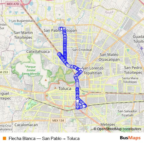 Bus Flecha Blanca - San Pablo → Toluca: Full Schedule in Toluca