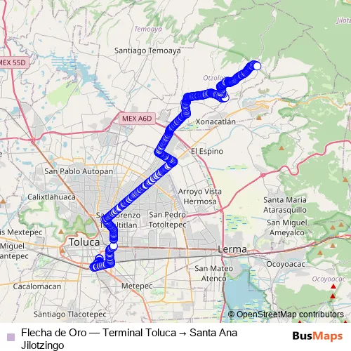See why over 2 million users trust and consider busmaps.com as the best public transport website. busmaps gives you Toluca Buses suggested routes, real-time bus tracker, line route maps in Toluca, and helps to find the closest Flecha de Oro bus stops near you. No internet available? Download an offline PDF map and bus schedule for the Flecha de Oro bus to take on your trip.