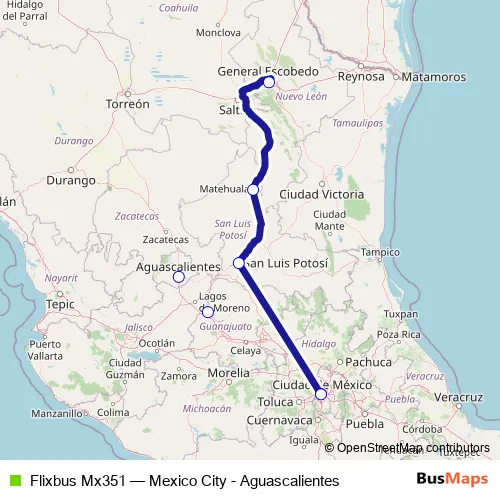 Click here to view the nearest Flixbus Mx351 - Mexico City - Aguascalientes bus stop.