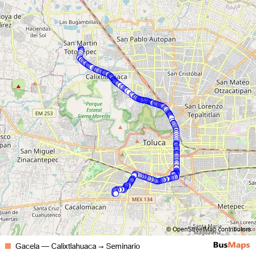 Bus Gacela - Calixtlahuaca → Seminario in Toluca: Stops & Timetable