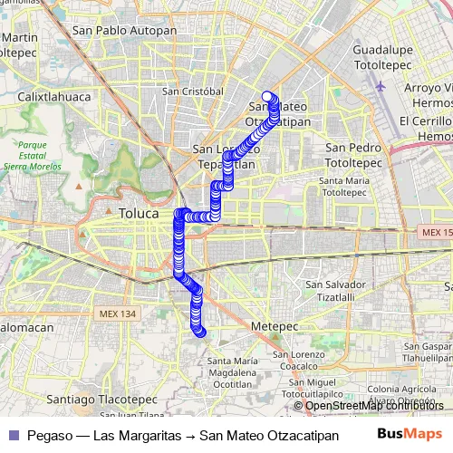 See why over 2 million users trust and consider busmaps.com as the best public transport website. busmaps gives you Toluca Buses suggested routes, real-time bus tracker, line route maps in Toluca, and helps to find the closest Pegaso bus stops near you. No internet available? Download an offline PDF map and bus schedule for the Pegaso bus to take on your trip.